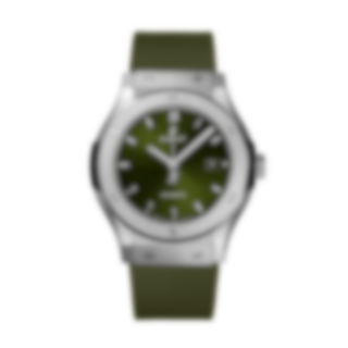 Titanium is extensively used by Hublot, specifically for its lightness. It displays the best relationship between resistance and weight of any material, which makes it an extremely popular material especially within aeronautics. It also stands out with its resistance to corrosion and its inertia in contact with the skin. Hublot only uses high quality, grade 5 titanium, the strongest there is. Once polished, this material retains a slightly bluish metallic sheen.