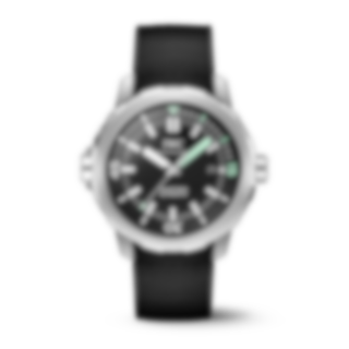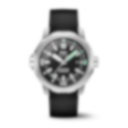At work inside the case is the IWC-manufactured 32111 caliber, which features automatic winding and a power reserve of 120 hours. The innovative external/internal rotating bezel combines ease of use with safety. The rotation of the external bezel is transmitted via a sliding clutch system to the internal bezel. The SafeDive system ensures that the inner ring with the dive time scale always rotates counterclockwise. Therefore, even in the event of an unintentional adjustment, the dive time can never be extended, and the diver's safety is guaranteed at all times. Thanks to the IWC quick-change system, the black rubber strap can be exchanged for another bracelet effortlessly.