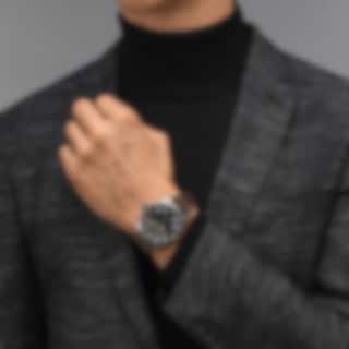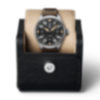 Titanium case, Automatic, self-winding, Diameter 43.0 mm, Black dial with luminescence, Brown calfskin strap with EasX-CHANGE system , Strap width 21.0 mm. Made in Switzerland