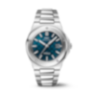 The 40-millimetre case and the newly engineered middle-link attachment ensure excellent wearability, even on a slender wrist. The characteristic round bezel is screwed onto the casing ring with five polygonal screws. The “Aqua” dial features the distinctive “Grid” structure, which consists of small lines offset to each other by 90 degrees. Rhodium-plated hands and appliques with luminescence ensure easy legibility.