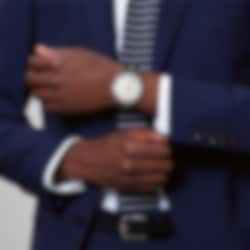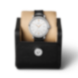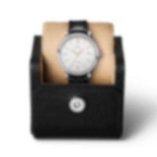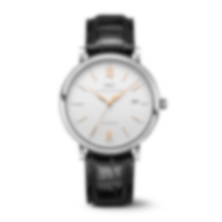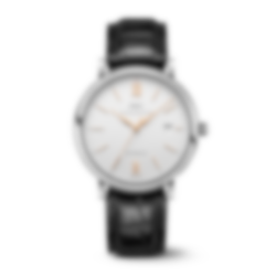 Stainless steel case, Automatic, self-winding, Diameter 40.0 mm, Silver-plated dial, Black alligator leather strap, Strap width 20.0 mm. Made in Switzerland.