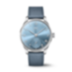 This version features an 18-carat gold case with a diameter of 40.4 millimetres, a Horizon blue dial, and rhodium-plated hands and appliques. The watch appears elegant and refined thanks to a thoroughly reworked case construction with a thinner casing ring and box-glass sapphire crystals on the front and back.