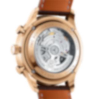 18 ct 5N gold case, Automatic, self-winding, Diameter 41.0 mm, Silver-plated dial, Dark brown alligator leather strap by Santoni , Strap width 20.0 mm. Made in Switzerland.