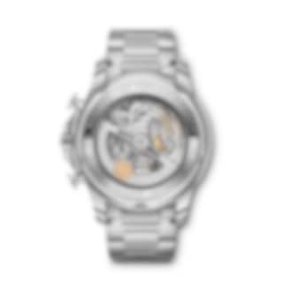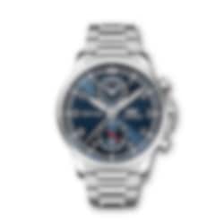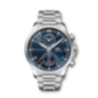 As a nautical sports watch, the Portugieser Yacht Club Chronograph combines timeless elegance with ruggedness and a 6 bar water-resistance. These characteristics make it an extremely versatile timepiece that exudes a beautiful figure both on water and on land. The filigree bezel and flat case ring lend the stainless-steel case with its 44-millimetre diameter expressly elegant proportions. The dial of this sporty chronograph impresses with typical Portugieser design features such as the characteristic minute scale and the appliquéd Arabic numerals. This model combines a blue dial with rhodium-plated hands and appliqués. The IWC-manufactured 89361 calibre with flyback function displays the stopped times combined in a single totalizer at "12 o’clock" and features a power reserve of 68 hours. The high-quality stainless-steel bracelet with polished and satin-finished surfaces ensures a perfect fit on the wrist.
