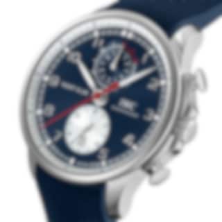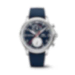As part of its partnership with the British designer fashion label Orlebar Brown, IWC is releasing the Portugieser Yacht Club Chronograph Edition "Orlebar Brown". The stainless steel case with a diameter of 44 millimetres is completed by a marine-blue dial, rhodium-plated hands and a red chronograph seconds hand. These colours are often used in Orlebar Brown’s product range. The nautical chronograph with elegant case proportions is fitted with a blue rubber strap with textile inlay and custom Orlebar Brown buckle. Thanks to its robust construction and water-resistance of 6 bar, it is ideally suited for use on water or on land. The IWC-manufactured 89361 calibre with flyback function displays the stopped hours and minutes combined on a subdial at "12 o'clock" and provides a power reserve of 68 hours.