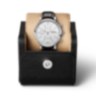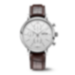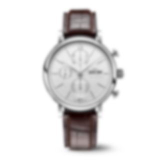 Stainless steel case, Automatic, self-winding, Diameter 42.0 mm, Silver-plated dial, Dark brown alligator leather strap, Strap width 20.0 mm. Made in Switzerland.