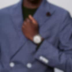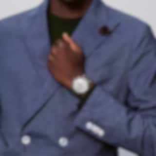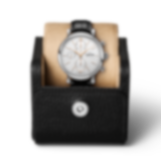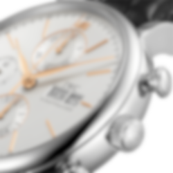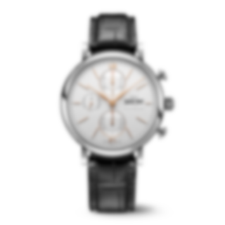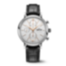 Stainless steel case, Automatic, self-winding, Diameter 42.0 mm, Silver-plated dial, Black alligator leather strap, Strap width 20.0 mm. Made in Switzerland.