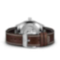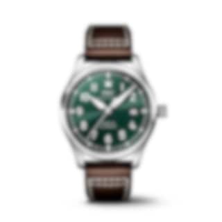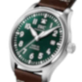 Less is more: the Mark XX reduces the design and technical functionality of a pilot's watch to its pure essence. It is the successor to the legendary Mark 11, a precise amagnetic instrument watch IWC developed in 1948 for the navigators and pilots of the British Royal Air Force. This version features a robust and corrosion-resistant stainless steel case with a diameter of 40 millimeters, a green dial, and rhodium-plated hands. The high-contrast dial with white numerals and indices, the triangular index at 12 o'clock, and luminous elements ensure easy readability in all lighting conditions. Precision is ensured by the IWC-manufactured 32111 caliber with automatic winding and a power reserve of 120 hours. The front glass is specially secured so that it cannot detach from its place even in the event of a sudden pressure drop. The Pilot's Watch Mark XX is water-resistant to 10 bar and is fitted on a brown calfskin strap with a pin buckle. Thanks to the integrated EasX-CHANGE® system, the strap can be easily exchanged for another without additional tools.