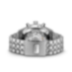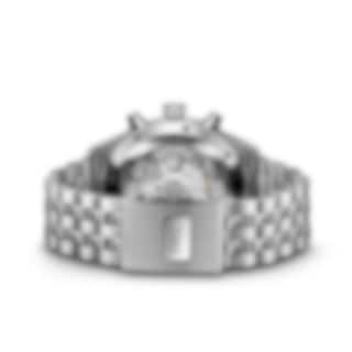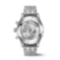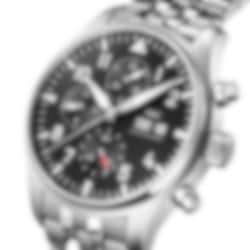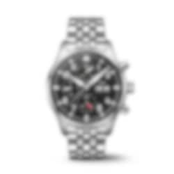 Chronographs have formed an integral part of IWC Schaffhausen’s Pilot’s Watches collection since 1994. This Pilot’s Watch Chronograph features a stainless steel case with a diameter of 43 millimeters, a black dial, and rhodium-plated hands. The high-contrast dial with large Arabic numerals and the triangle index marker at 12 o’clock has been designed in the style of an easy-to-read cockpit instrument. Thanks to luminescent elements, the time can be read at a glance, even at night, or in difficult visibility conditions. The IWC-manufactured 69385 caliber, a precise and robust chronograph movement in classic column-wheel design, enables measurement of stop or aggregate times of up to 12 hours. The hours are displayed on a counter at 9 o’clock, the minutes at 12 o’clock. The small second features a red hand and is located at 6 o’clock. The self-winding movement with a power reserve of 46 hours is visible through the sapphire glass back. Water-resistant to 10 bar, the chronograph is fitted on a 5-link stainless steel bracelet with a folding clasp. Thanks to the integrated EasX-CHANGE® system, the strap can be easily changed without needing any additional tools.