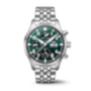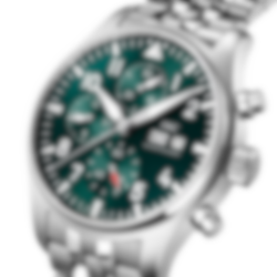 Chronographs have formed an integral part of IWC Schaffhausen’s Pilot’s Watches collection since 1994. This Pilot’s Watch Chronograph features a stainless steel case with a diameter of 43 millimeters, a green dial, and rhodium-plated hands. The high-contrast dial with large Arabic numerals and the triangle index marker at 12 o’clock has been designed in the style of an easy-to-read cockpit instrument. Thanks to luminescent elements, the time can be read at a glance, even at night, or in difficult visibility conditions.