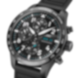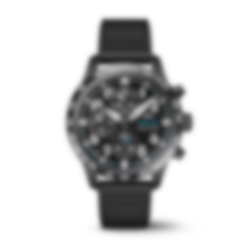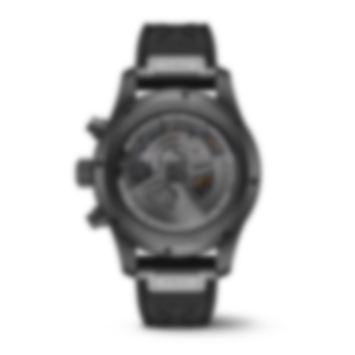 The Pilot’s Watch Performance Chronograph 41 is powered by the IWC-manufactured 69385 calibre. This mechanical chronograph movement consists of 242 individual parts and is visible through a tinted sapphire glass case back. Its bi-directional pawl winding system builds up a power reserve of 46 hours in the mainspring. Column-wheel control of the chronograph ensures that individual phases in the switching sequence are clearly defined. There is also a distinct tactile resistance when the buttons are pushed. The chronograph features the IWC-typical vertical subdial layout. The stopped minutes are displayed directly at the 12 o’clock position, enhancing readability. Water-resistant to 10 bar, the watch with a durable and waterproof black rubber strap with a Ceratanium pin buckle.