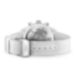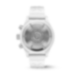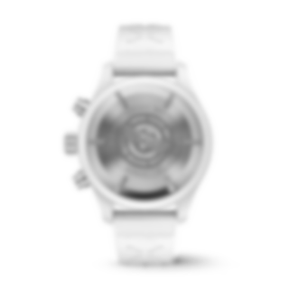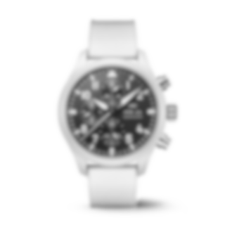 A subdued white with a mysterious shimmer: the ceramic color “Lake Tahoe” is inspired by the “Service Dress White” uniform of the US Navy, but also by the contrasting winter landscape with the snow-covered peaks around the largest freshwater lake in the Sierra Nevada. The elite pilots from the TOP GUN flight school often fly over this mountainous landscape. White ceramic is emblematic of IWC's comprehensive ceramic expertise. The brand experimented with this colour as early as during the 1980s. The striking white ceramic case of the Pilot’s Watch Chronograph TOP GUN Edition “Lake Tahoe” is combined with a black dial and black hands, as well as white print and luminescence. The case back featuring the TOP GUN logo is made of titanium, while the pushers and crown are made of stainless steel. Inside the ceramic case with a diameter of 44 millimetres, the IWC-manufacture 69380 calibre is at work. Featuring a classic column-wheel design, the chronograph also features a day and date display at 3 o’clock. A soft-iron inner case shields the movement from the effects of magnetic fields. This TOP GUN chronograph is fitted on a white rubber strap with a distinctive embossing, whose color has been perfectly matched to the “Lake Tahoe” case.