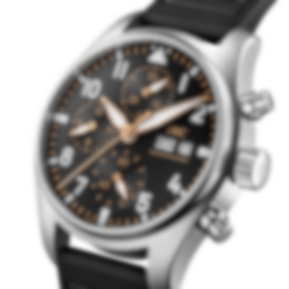 Dedicated to the fictional “APXGP” team from the movie F1®, the Pilot’s Watch Chronograph 41 APXGP features a design in the team’s colors with black, gold and white elements. A stainless steel case with a diameter of 41 millimeters is combined with a black dial, which is printed with white numerals and golden minute markers.