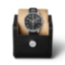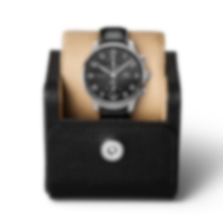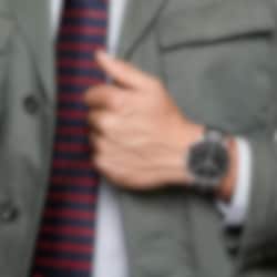 Stainless steel case, Automatic, self-winding, Diameter 41.0 mm, Black dial, Black alligator leather strap, Strap width 20.0 mm. Made in Switzerland.