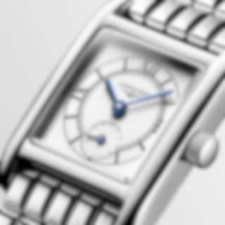 With its discreet profile, classic styling, and aesthetic variations that are at once timely and timeless, the Mini DolceVita exquisitely expresses, in equal parts, Longines’ quiet luxury and contemporary elegance. The meticulously designed collection is an extension of the original DolceVita family, inspired by a Longines legend created in 1927. Presented in an impressive range of materials and colours, the Mini DolceVita watches feature a discreet 21.50mm x 29mm case and are available with or without diamonds.