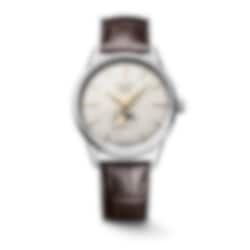 Moonphase Date, Self-winding mechanical movement beating at 25'200 vibrations per hour, with a monocrystalline silicon balance-spring power reserve up to 72 hours.18 karat gold medallion with caravelle, Water-resistant to 3 bar, Scratch-resistant sapphire crystal, with several layers of anti-reflective coating on both sides.Silver dial, Swiss Super-LumiNova®.Alligator strap bracelet, With buckle.