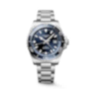 Combining performance and style, the HydroConquest watches are designed for anyone who likes to raise the bar and explore new horizons. Inspired by the world of water sports, the line stands out with its daring design. Water-resistant up to 30 bar (300 m) with a unidirectional rotating ceramic bezel and screw-down crown and case back, it guarantees exceptional reliability at all times. The HydroConquest collection comes in a range of sizes, materials and colours to suit all tastes.