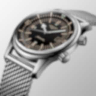 Originally designed for underwater exploration, the LONGINES Legend Diver is equally at home on land or underwater. With its timeless design and cutting-edge performance, it has been a true icon of watchmaking since 1959. At first glance, it is distinctive because of its two crowns and internal rotating bezel. Invented by LONGINES, the position of the bezel inside the case protects it from accidental manipulation and shocks that could alter its settings. These true tool watches are powered by exclusive LONGINES calibres equipped with a silicon balance-spring. The collection is available in a range of sizes, materials and colours.