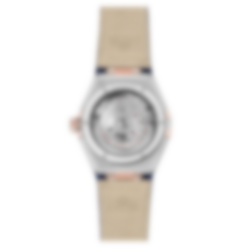 Standout features on this 29 mm model are the dial made from natural blue Aventurine stone and the shimmering leather strap in matching colour.