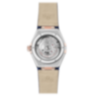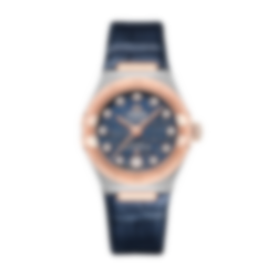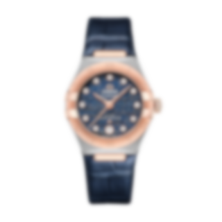 Crafted in stainless steel and 18K Sedna™ gold, it has a bezel engraved with Roman numerals and a date window at 6 o’clock. The hands, hour markers, OMEGA logo and Constellation star are in 18K Sedna™ gold.