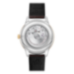 In this 27.5 mm stainless steel model, the dial is crafted from white mother-of-pearl. The display is distinguished by PVD Sedna™ Gold coloured hands, as well as alternating Roman numerals and cabochon indexes. The pure look of the timepiece is completed by a full caseback embossed with a God Chronos medallion.