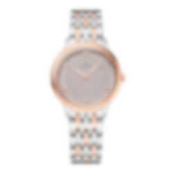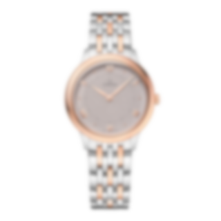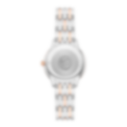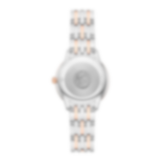 In this 30 mm stainless steel - 18K Sedna™ Gold model, the PVD rose-grey sandy dial features a crystal finish. The display is distinguished by PVD Sedna™ Gold coloured hands, as well as alternating Roman numerals and cabochon indexes.