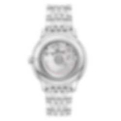 The pure look of the timepiece is completed by a date window at 6 o’clock, and a railway minute track on the outer zone.