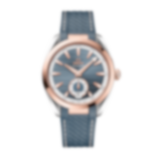Presented on a structured blue rubber strap with grey stitching, this timepiece is powered by the OMEGA Co-Axial Master Chronometer calibre 8916, certified at the industry’s highest standard by the Swiss Federal Institute of Metrology (METAS).