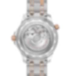 This 42 mm model is crafted from stainless steel and 18K Sedna™ gold, and includes a black ceramic bezel with a Ceragold™ diving scale. The dial is also polished black ceramic and features laser-engraved waves and a date window at 6 o’clock.