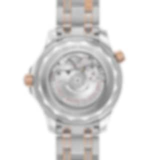 The watch is presented on a stainless steel and 18K Sedna™ gold bracelet and is driven by the OMEGA Master Chronometer Calibre 8800, which can be seen through the sapphire-crystal on the wave-edged caseback.