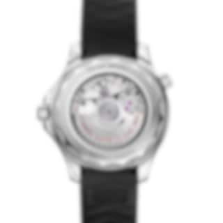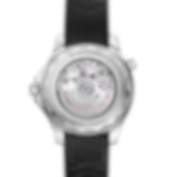 The watch is presented on an integrated black rubber strap with foldover clasp, and is driven by the OMEGA Co-Axial Master Chronometer Calibre 8806, which can be seen through the sapphire-crystal caseback.