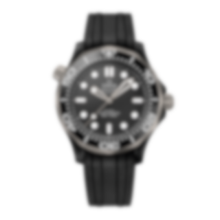 The watch is presented on an integrated black rubber strap with a polished-brushed black ceramic [ZrO2] buckle, and is driven by the OMEGA Master Chronometer Calibre 8806, which can be seen through the sapphire-crystal on the wave-edged caseback