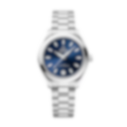 The blue dial is sun-brushed, PVD colour-treated and lacquered, with a circular date window at 6 o’clock. It is highlighted by 11 boat hull-shaped indexes and redesigned faceted hands, with the minute hand tapering to a delicate point. All the applied elements and hands are in 18K white gold, while the indexes and hands are also filled with white Super-LumiNova which emits a blue glow.