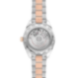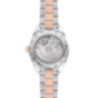 This 30 mm stainless steel and 18K Sedna™ Gold model has a symmetrical polished case and features a screw-in caseback with wave-edged design.
