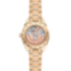 Crafted in 18K Moonshine™ Gold, this model has a symmetrical polished case and features a polished bezel set with 46 diamonds and a screw-in caseback with wave-edged design.