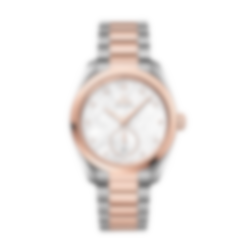 The extra white mother-of-pearl dial is distinguished by a date window at 6H and a Small Seconds subdial featuring an 18K Sedna™ gold ring set with diamonds. The design is further complemented by 18K Sedna™ gold hands filled with white Super-LumiNova, as well as incremental diamond indexes that are set in 18K Sedna™ gold holders.
