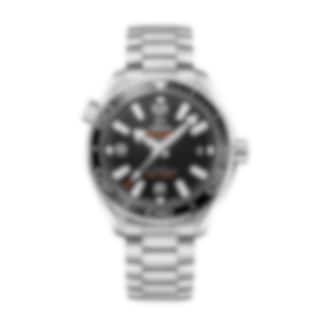 This model, with its scratch-resistant sapphire crystal, features a black ceramic dial with Arabic numerals and a date window at the 3 o’clock position. The black ceramic unidirectional bezel with OMEGA Liquidmetal™ diving scale is mounted on a 39.5 mm stainless steel case.