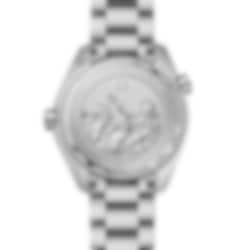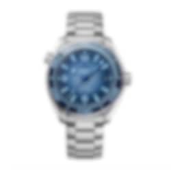 The vertical brushed ceramic dial in OMEGA’s own Summer Blue is PVD treated and varnished with a gradient finish to reflect the watch’s level of water resistance. A blue ceramic bezel with light blue diving scale encircles the bold display, which includes blued hands and indexes filled with a unique light blue Super-LumiNova.