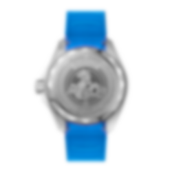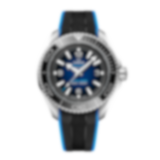 This 45.5 mm model in robust O-MEGASTEEL features a polished black ceramic bezel with its diving scale in Liquidmetal™. Through the protuberant and domed sapphire crystal, the lacquered gradient dial transitions from blue to black, and has been given 18K white gold hands and hour markers, which are all coated with white Super-LumiNova.