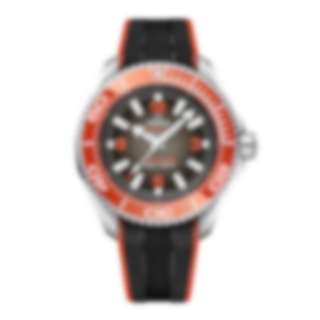 This 45.5 mm model in robust O-MEGASTEEL features a polished orange ceramic bezel with its diving scale in liquid ceramic and Super-LumiNova. Through the protuberant and domed sapphire crystal, the lacquered gradient dial transitions from grey to black, and has been given four Arabic numerals in orange, as well as 18K white gold hands and hour markers, which are all coated with white Super-LumiNova.