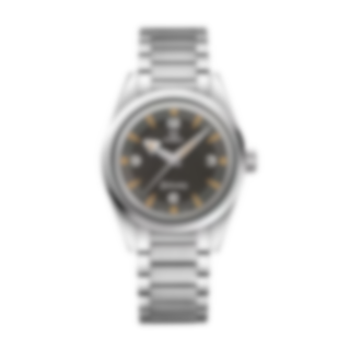 In common with all three watches in the Trilogy, it is cased in brushed and polished stainless steel and features a black 'tropical' dial, with vintage recessed indexes filled with Super-LumiNova.