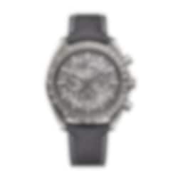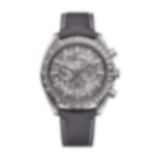 Honouring OMEGA’s legacy of space exploration, this Speedmaster Grey Side of the Moon features a 44.25 mm case in polished-brushed grey ceramic with a plasma treatment. The brushed bezel is also made from grey ceramic and features a laser-engraved tachymeter scale that is filled with white Super-LumiNova.