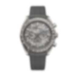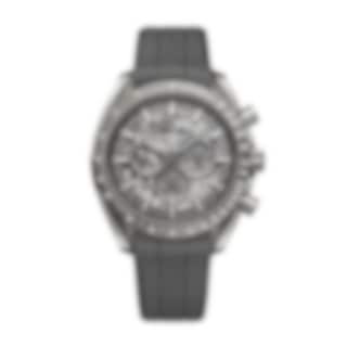 Honouring OMEGA’s legacy of space exploration, this Speedmaster Grey Side of the Moon features a 44.25 mm case in polished-brushed grey ceramic with a plasma treatment. The brushed bezel is also made from grey ceramic and features a laser-engraved tachymeter scale that is filled with white Super-LumiNova.