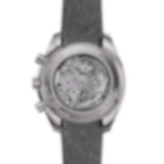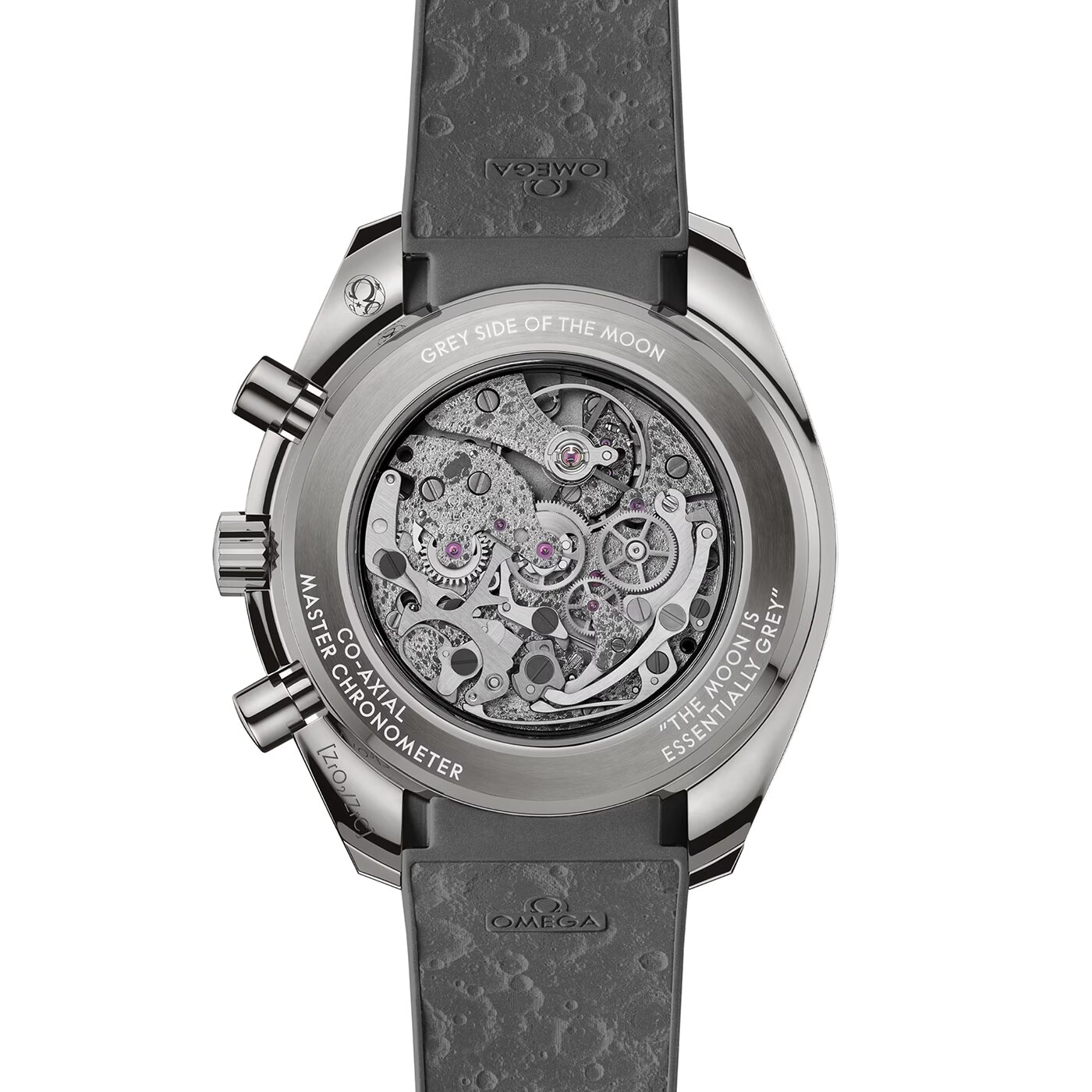 The specially decorated movement is the OMEGA Co-Axial Master Chronometer Calibre 3869, while the engravings on the caseback include the quote, THE MOON IS ESSENTIALLY GREY, which is attributed to Command Module Pilot, Jim Lovell, during the Apollo 8 mission.