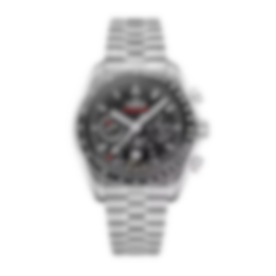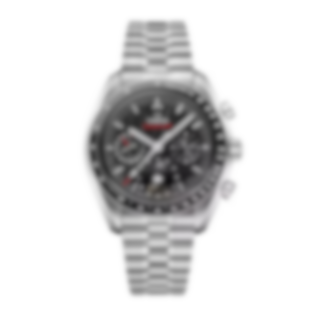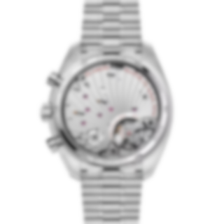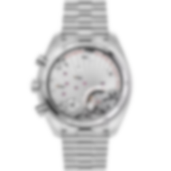 The case in polished-brushed stainless steel is complemented by a polished black ceramic bezel ring with white enamel tachymeter scale. Fixing the Moonphase watch to the wrist is a bracelet in polished-brushed stainless steel. With patented comfort release adjustment as used on the famous Speedmaster.