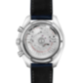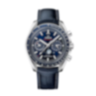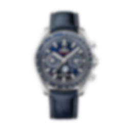 The stainless steel case is complemented by a blue ceramic bezel ring with Liquidmetal™ tachymeter scale and presented on a blue leather strap with a polished-brushed foldover clasp.