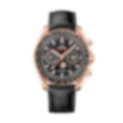 Cased in 18K Sedna™ gold and circled with a black ceramic bezel ring with Ceragold™ tachymeter scale, this watch is presented on a black leather strap with a polished-brushed 18K Sedna™ gold foldover clasp.