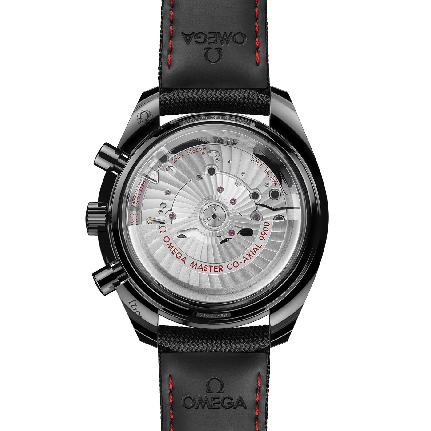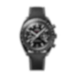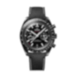 Driven by OMEGA's self-winding Co-Axial Master Chronometer Calibre 9900, this bold timepiece is finished with a black nylon fabric strap that includes black rubber lining, a ceramic foldover clasp, and ceramised titanium frame-spring folders.