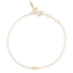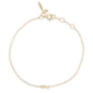 Ett guldarmband på tunn kedja med två stycken små hjärtan tillsammans. Det ena hjärtat är högpolerad och den andra i skimrande borstat guld.