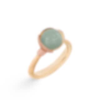 Ring Lotus i rödguld med roséguldsblad och en cabochonslipad akvamarin.
